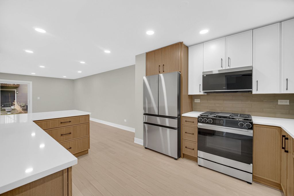 Welcome to your dream home nestled along the picturesque 15th fairway and pond of the Old Orchard Golf Course. This completely renovated 3-bedroom, 2.5-bathroom townhome offers the perfect blend of comfort, style, and everyday convenience in a premier location. Step inside to discover a bright, open-concept living space filled with natural light and BRAND NEW finishes throughout. The main level features a welcoming living room/dining room with new, large sliding doors, a cozy fireplace, and hardwood flooring throughout. Adjacent, the updated kitchen boasts ample cabinetry, sleek countertops, stainless-steel appliances, and a breakfast bar - ideal for both everyday meals and entertaining. There is also a nice flex space located off the garage; possible uses include a mudroom, extra dining space, or open office space, whatever works best for your needs. Upstairs, you'll find three spacious bedrooms, including a tranquil primary suite complete with balcony, an ensuite bathroom, and walk-in closet. Two additional well-appointed bedrooms share a beautifully updated full bath, offering comfort and flexibility for family, guests, or a home office. The convenience of a half bath on the main level and an attached garage adds to the effortless living experience. Full finished basement offers plenty of storage as well as a ton of extra living space. Step outside to one of your two private patio - a peaceful retreat overlooking the golf course where morning coffee or evening sunsets become cherished rituals. Residents enjoy access to the community's exceptional amenities, including indoor and outdoor swimming pools, clubhouse facilities, and more, all just moments from shopping, dining, parks, and major transportation routes. New roof and fiber cement siding completed 2023. Don't miss your opportunity to own an exceptionally renovated townhome in one of Mount Prospect's most sought-after golf course communities!