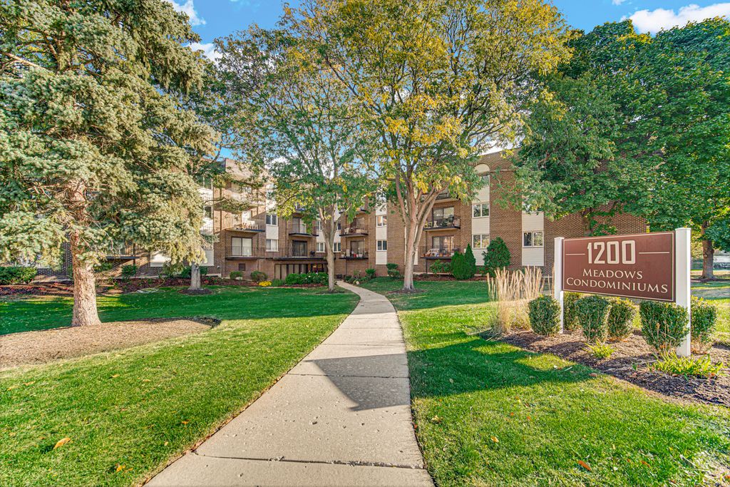 This beautifully maintained 2-bedroom, 2-bathroom condo offers a perfect blend of comfort and convenience. Spacious corner unit offers open floor plan filled with southern exposure natural light, ideal for entertaining or relaxing. Both bedrooms are generously sized, offering plenty of closet space. Primary includes an en-suite bathroom for added privacy. Eating areas in both kitchen and formal dining room. In-unit laundry for added convenience. Quant balcony for some outdoor space. Great location right between downtown Mt. Prospect and Arlington Heights; near shops, restaurants, and public transportation. Building also backs Meadows Park & Pool for plenty of summertime fun! Mover right in, or renovate and remove the wall between kitchen and living room to truly make this a show stopper! Don't miss the chance to make it yours!