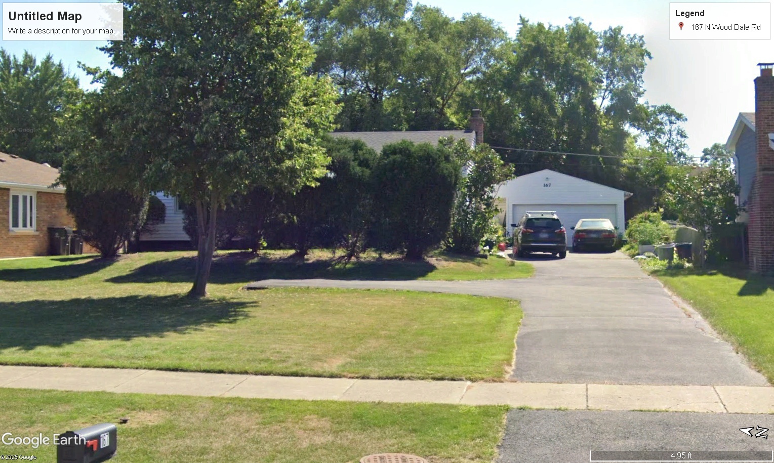 Good size Ranch on larger lot in Wood Dale. Needs updating and decorating. Living room, eat in kitchen and 4 Bedrooms plus a basement. All new windows except for Living room. Covered front porch. Oversize 2 car garage with side drive and convenient turn around/extra parking space. Walking Distance to train. Estate Sale Sold AS IS.