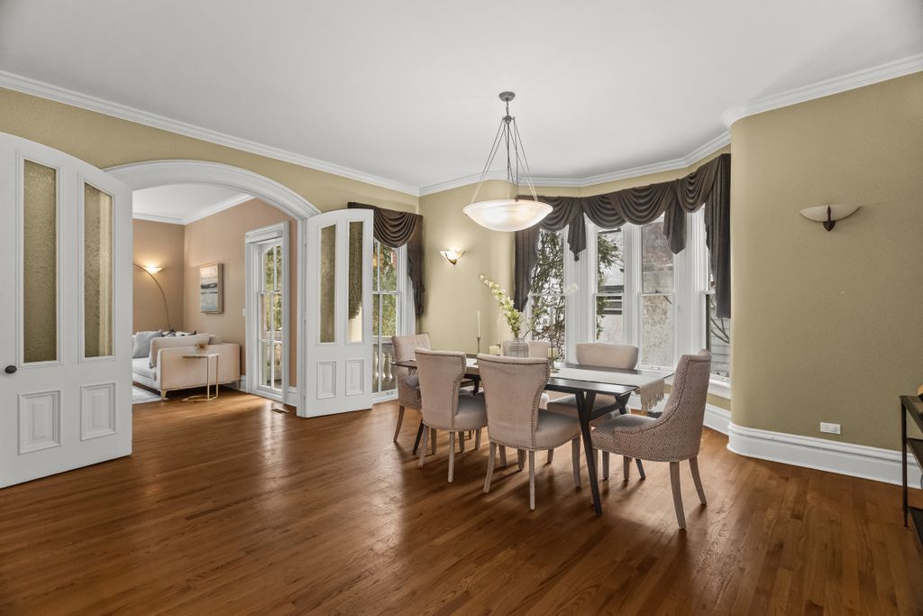 Gracious 5-bedroom Victorian in Northeast Evanston! Welcome to 2236 Ridge Avenue-a stately and elegant frame Victorian located in sought-after Northeast Evanston. Winning an Evanston Preservation Award, this Evanston landmark seamlessly blends timeless architectural charm with spacious, modern living. Step inside through a custom leaded-glass front door and be greeted by a grand foyer and graceful curved staircase. The main level boasts soaring 10' ceilings, rich oak hardwood floors, and abundant natural light. The living room features a dramatic bay window, crown molding, floor-to-ceiling windows, and a decorative fireplace, while the formal dining room adds warmth and character with its own bay window and fireplace. Perfect for modern living, the expansive kitchen is equipped with oak cabinetry, granite-look counters, tile flooring, and top-tier appliances including a Sub-Zero fridge, Miele dishwasher, double ovens, and a large island with built-in cooktop and breakfast bar. Adjacent to the kitchen, a sunny breakfast room opens to a terrace with a built-in gas grill-ideal for al fresco dining. A cozy family room leads to a shaded deck with elegant pillared sides, offering direct access to the large, landscaped backyard. A rare first-floor bedroom with a full bath (currently used as an office) adds flexibility for guests or multi-generational living. Upstairs, find four bedrooms, including a luxurious primary suite with a gas fireplace, dual walk-in closets, and an expansive en-suite bath featuring a jacuzzi tub, walk-in shower, double vanity, and private water closet. A charming second-floor landing offers space for a reading nook or office, and a private balcony off the fourth bedroom provides a serene outdoor retreat. Additional highlights include: Three-car brick garage, multiple terraces and outdoor entertaining areas, finished basement flexible-use rooms large laundry/utility closet on the main floor, attic storage and central heat and air conditioning! Located on a quieter stretch of Ridge, the home is shielded by professional landscaping. With its blend of historic character, spacious layout, and prime location near schools, parks, and transit, 2236 Ridge is the perfect place to call home. Schedule your private tour today.